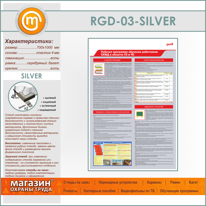 Стенд «Рабочая программа обучения работников СКЖД в области ГО и ЧС» (RGD-03-SILVER) в Верее купить