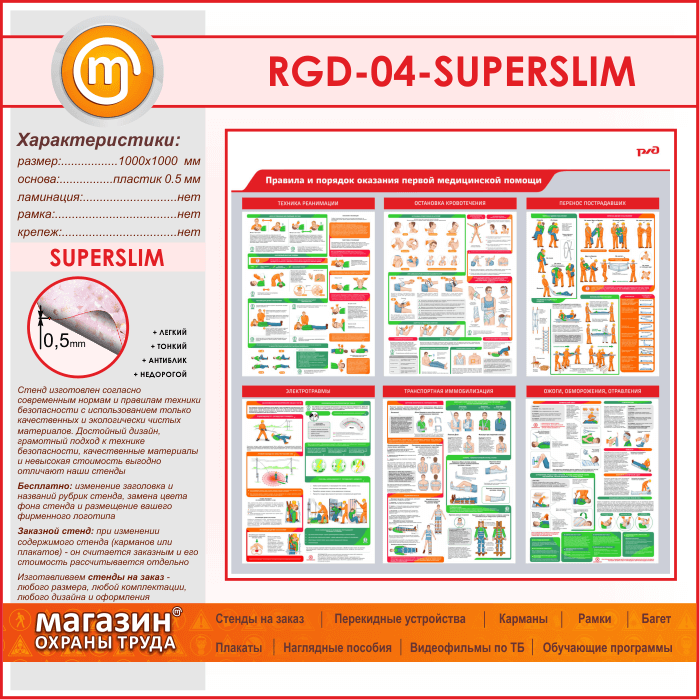 Стенд «Правила и порядок оказания первой медицинской помощи» (RGD-04-SUPERSLIM) в Верее купить