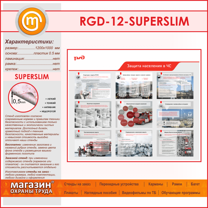Стенд «Защита населения в ЧС» (RGD-12-SUPERSLIM) в Верее купить