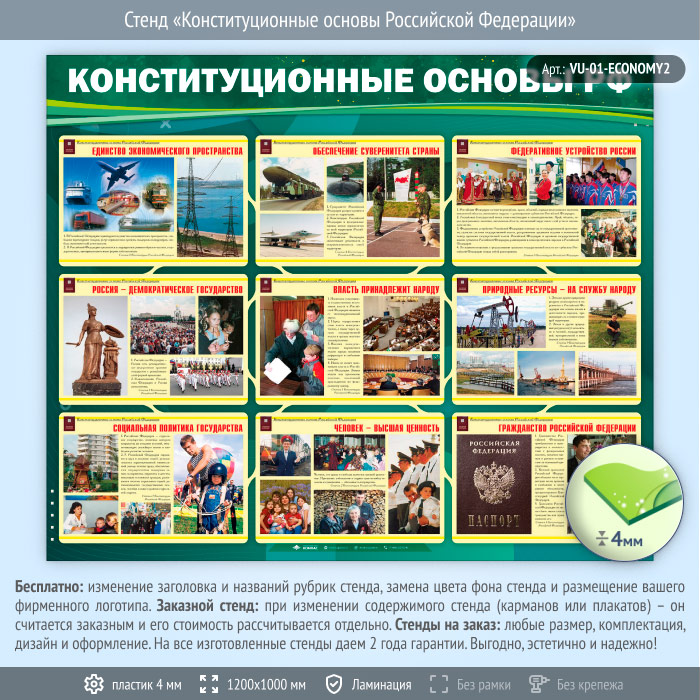 Стенд «Конституционные основы Российской Федерации» (VU-01-ECONOMY2) в Верее купить