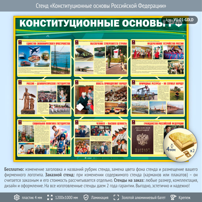 Стенд «Конституционные основы Российской Федерации» (VU-01-GOLD) в Верее купить