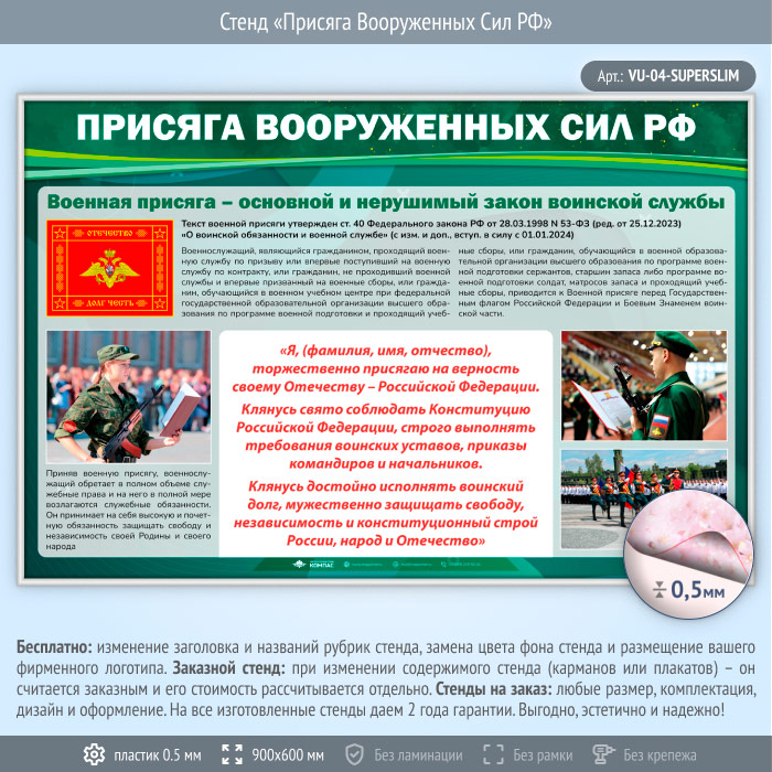 Стенд «Присяга Вооруженных Сил РФ» (VU-04-SUPERSLIM) в Верее купить
