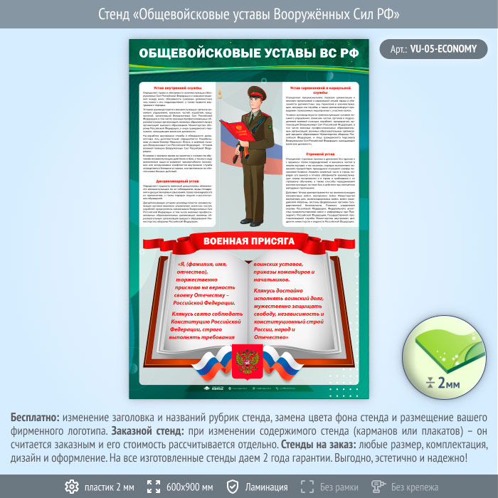 Стенд «Общевойсковые уставы Вооружённых Сил РФ» (VU-05-ECONOMY) в Верее купить
