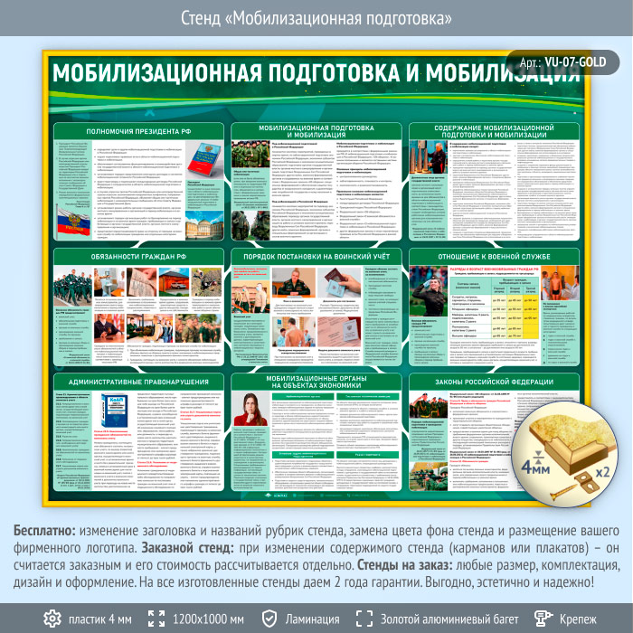 Стенд «Мобилизационная подготовка» (VU-07-GOLD) в Верее купить