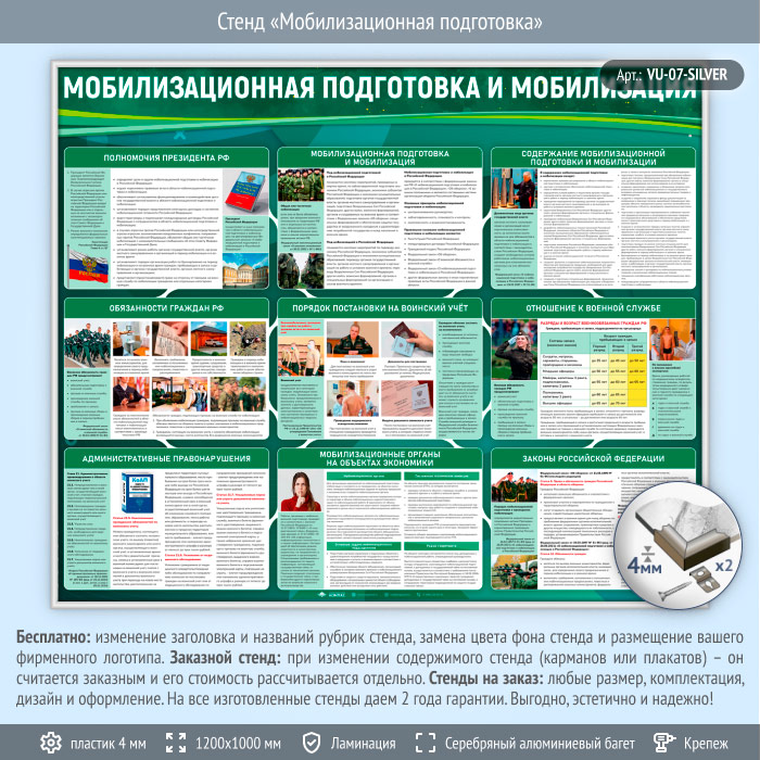 Стенд «Мобилизационная подготовка» (VU-07-SILVER) в Верее купить