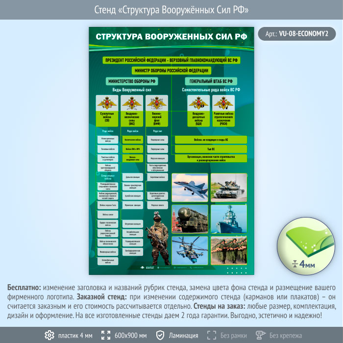 Стенд «Структура Вооружённых Сил РФ» (VU-08-ECONOMY2) в Верее купить