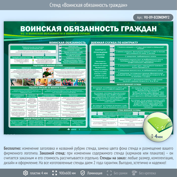 Стенд «Воинская обязанность граждан» (VU-09-ECONOMY2) в Верее купить