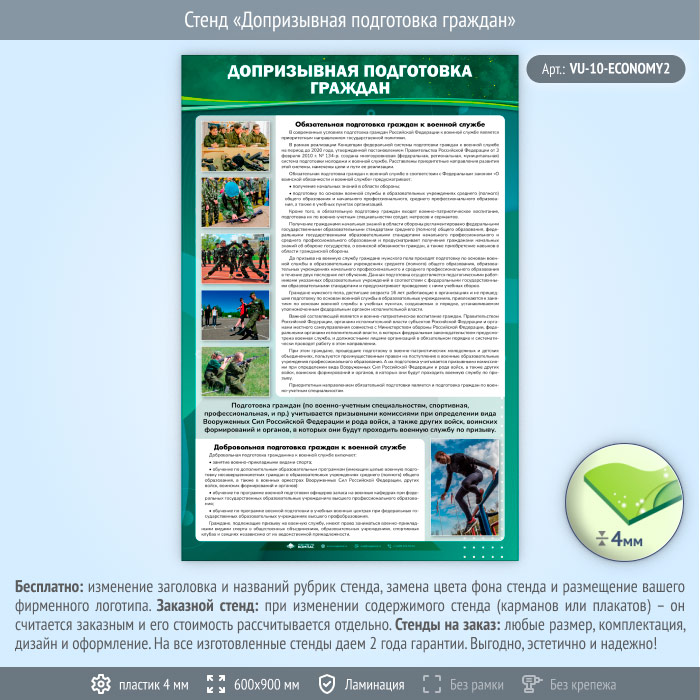 Стенд «Допризывная подготовка граждан» (VU-10-ECONOMY2) в Верее купить