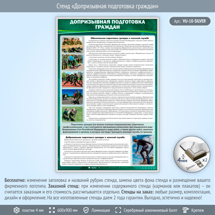 Стенд «Допризывная подготовка граждан» (VU-10-SILVER) в Верее купить