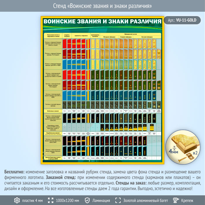 Стенд «Воинские звания и знаки различия» (VU-11-GOLD) в Верее купить
