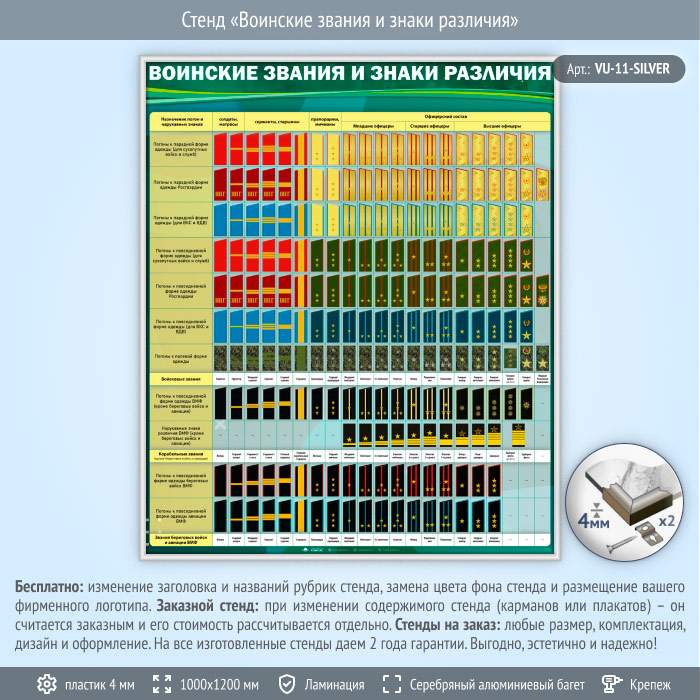 Стенд «Воинские звания и знаки различия» (VU-11-SILVER) в Верее купить