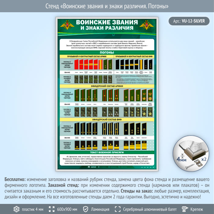 Стенд «Воинские звания и знаки различия. Погоны» (VU-12-SILVER) в Верее купить