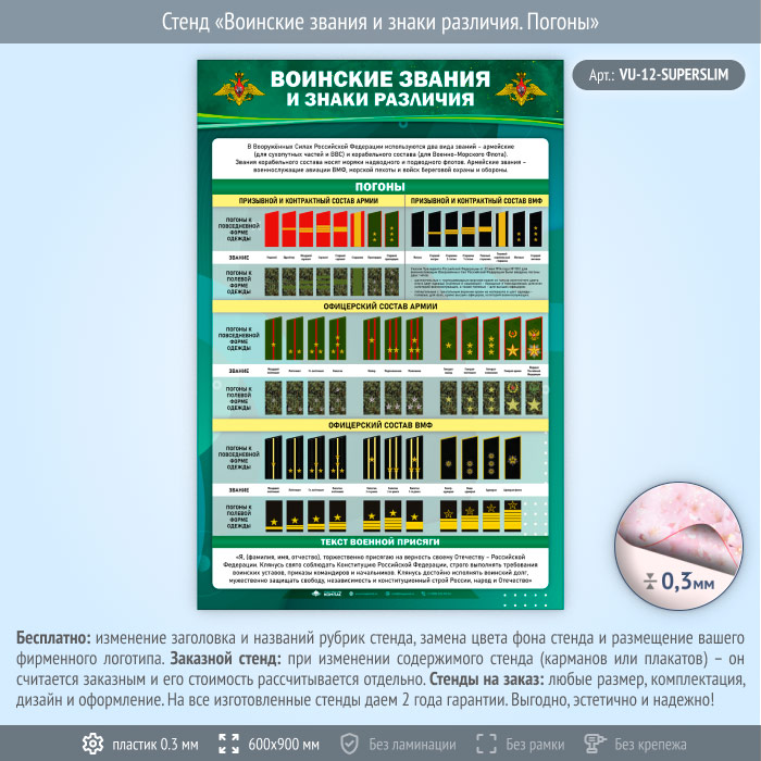 Стенд «Воинские звания и знаки различия. Погоны» (VU-12-SUPERSLIM) в Верее купить
