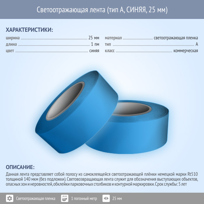 Светоотражающая однородная лента (тип А, СИНЯЯ, 25 мм х 1 п.м.) в Верее купить