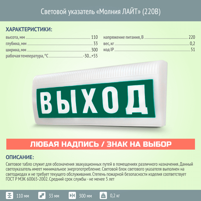 Световой указатель Молния ЛАЙТ (220В) в Верее купить