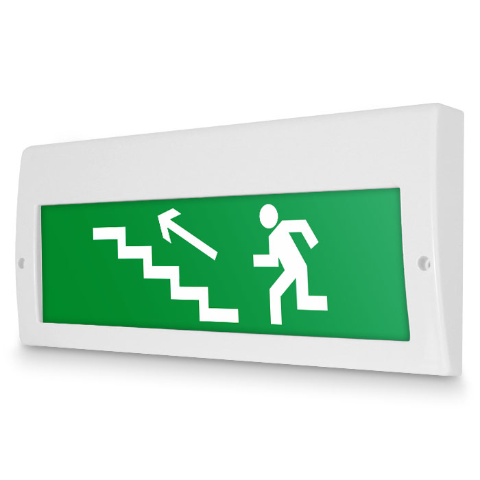 Световое табло «Направление к эвакуационному выходу по лестнице вверх (левосторонний)», Молния (220В РИП) в Верее купить