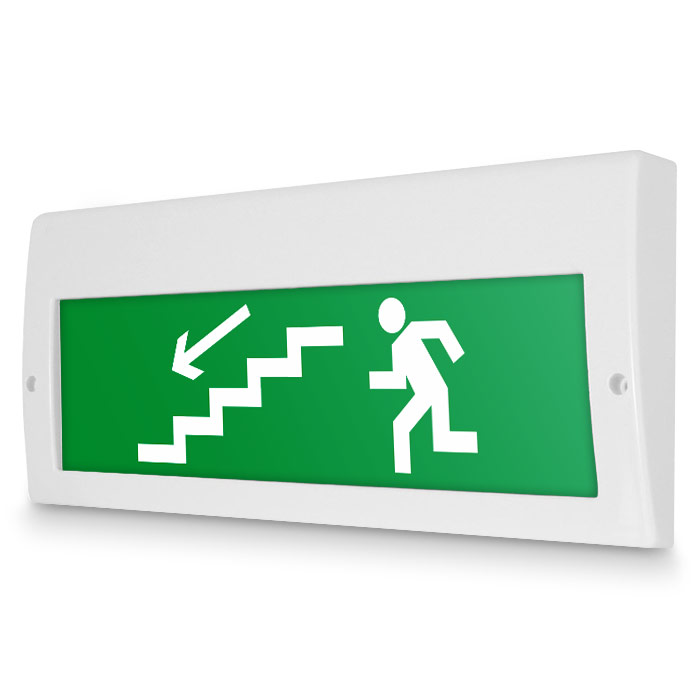 Световое табло «Направление к эвакуационному выходу по лестнице вниз (левосторонний)», Молния (220В РИП) в Верее купить