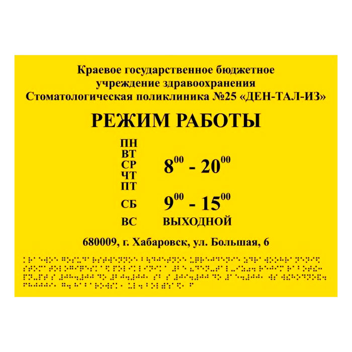 Тактильная вывеска с дублированием азбукой Брайля, ДС12 (полистирол 3 мм, 400х300 мм) в Верее купить