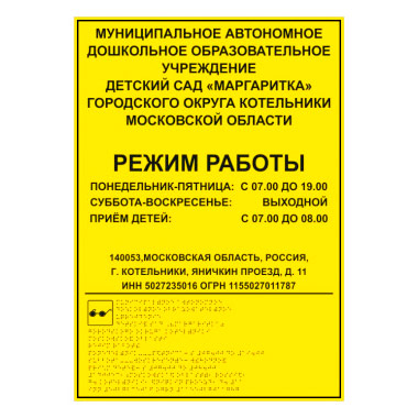 Тактильная вывеска с дублированием азбукой Брайля, ДС8 (полистирол 3 мм, 300х400 мм) в Верее купить