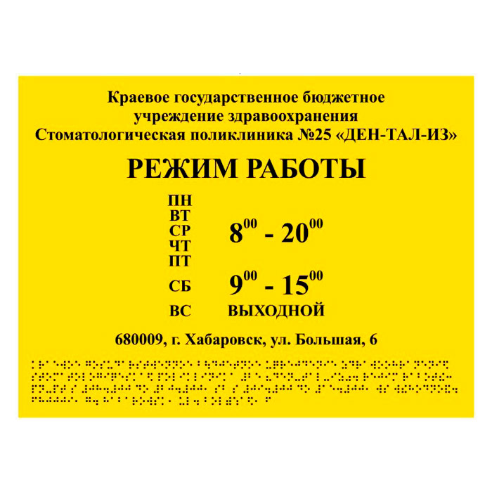 Тактильная вывеска с дублированием азбукой Брайля, ДС10 (полистирол 3 мм, 600х500 мм) в Верее купить