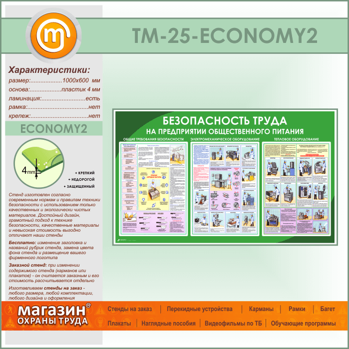 Стенд «Безопасность труда на предприятиях общественного питания» (TM-25-ECONOMY2) в Верее купить