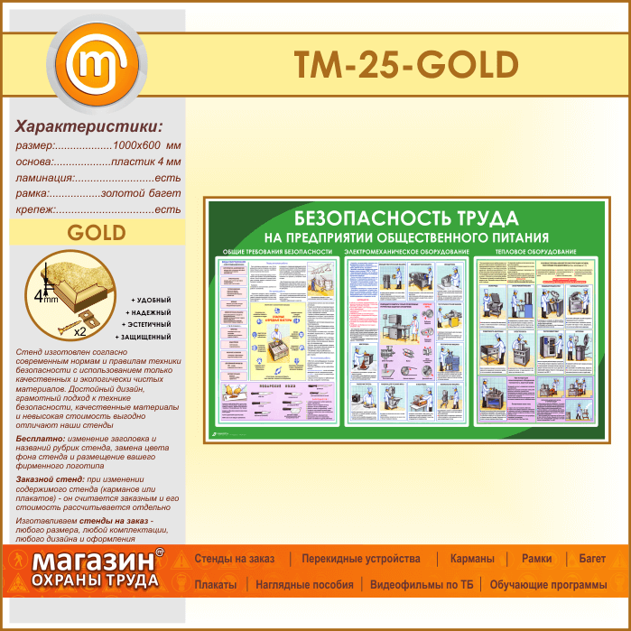 Стенд «Безопасность труда на предприятиях общественного питания» (TM-25-GOLD) в Верее купить