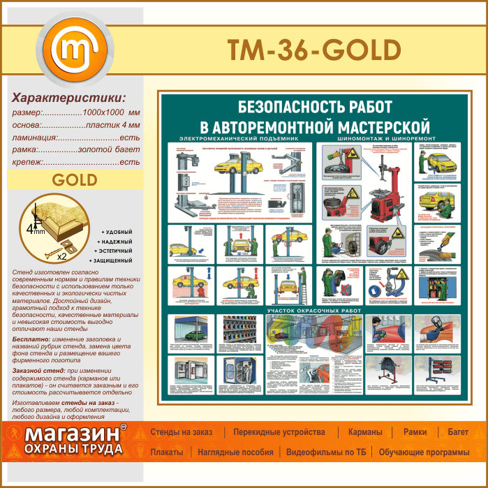Стенд «Безопасность работ в авторемонтной мастерской» (TM-36-GOLD) в Верее купить