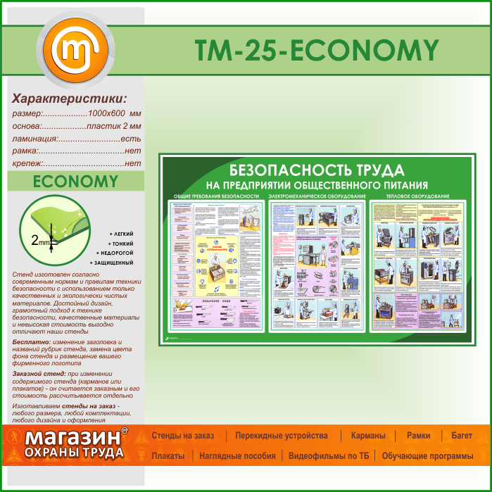 Стенд «Безопасность труда на предприятиях общественного питания» (TM-25-ECONOMY) в Верее купить