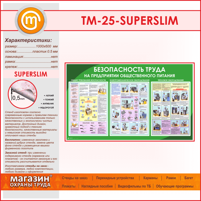Стенд «Безопасность труда на предприятиях общественного питания» (TM-25-SUPERSLIM) в Верее купить