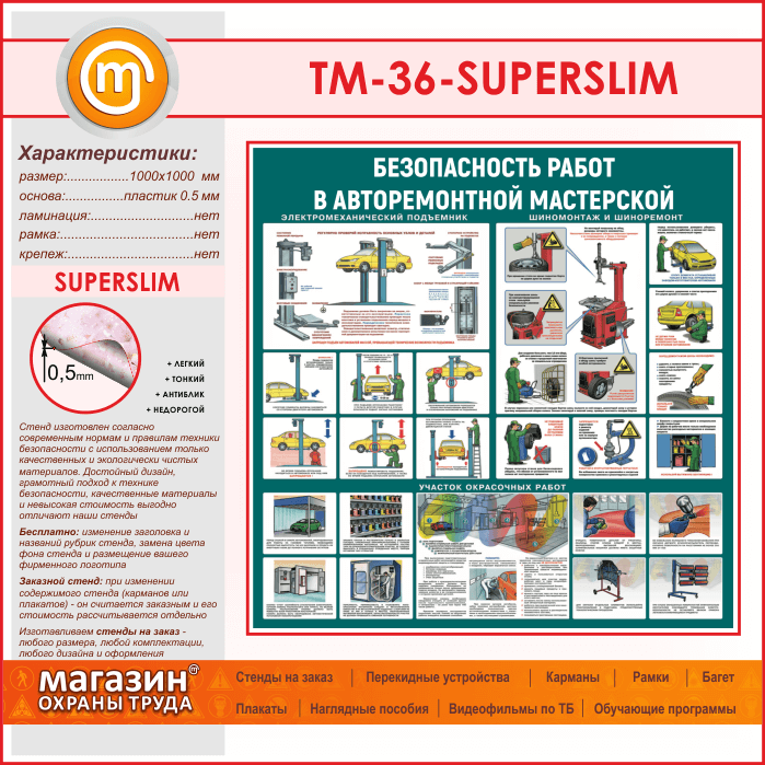 Стенд «Безопасность работ в авторемонтной мастерской» (TM-36-SUPERSLIM) в Верее купить