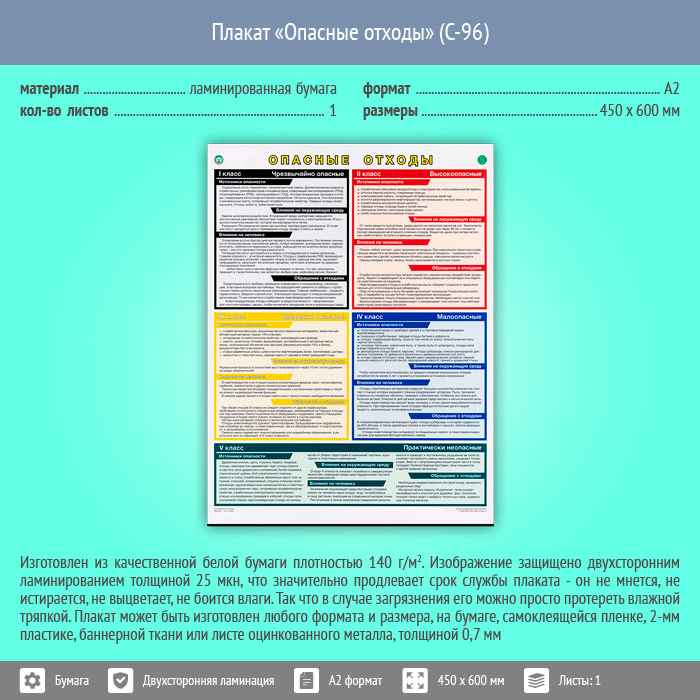 Плакат «Опасные отходы» (С-96, ламинированная бумага, А2, 1 лист) в Верее купить