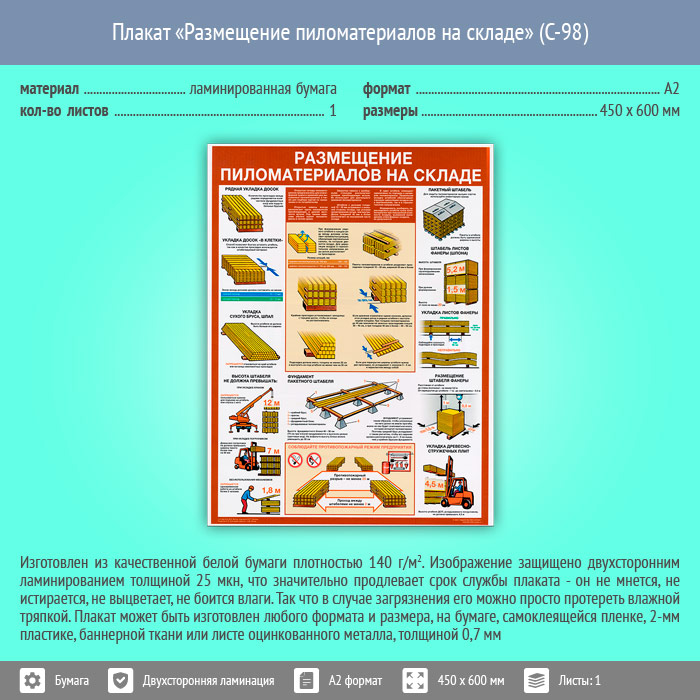 Плакат «Размещение пиломатериалов на складе» (С-98, ламинированная бумага, А2, 1 лист) в Верее купить