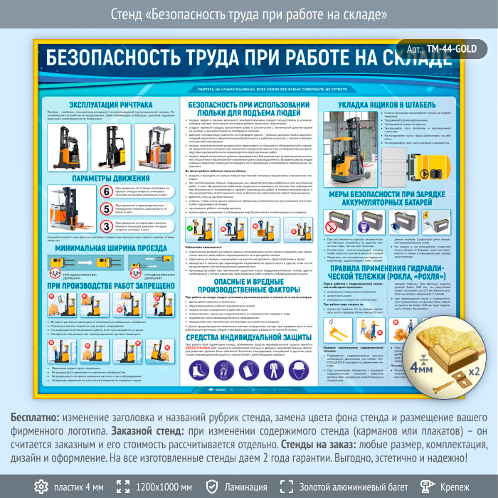 Стенд «Безопасность труда при работе на складе» (TM-44-GOLD) в Верее купить
