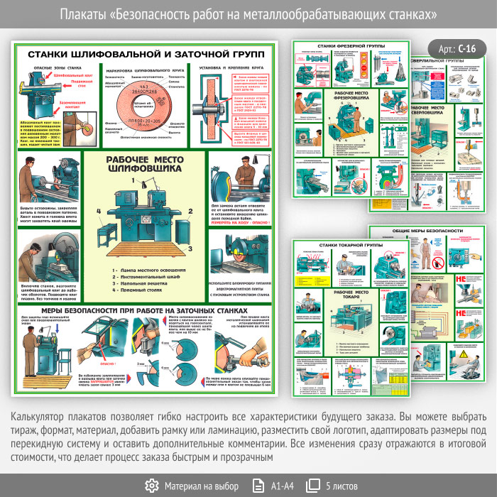 Плакат «Безопасность работ на металлообрабатывающих станках» (С-16, 5 листов) в Верее купить