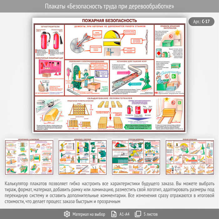Плакаты «Безопасность труда при деревообработке» (С-17, 5 листов) в Верее купить