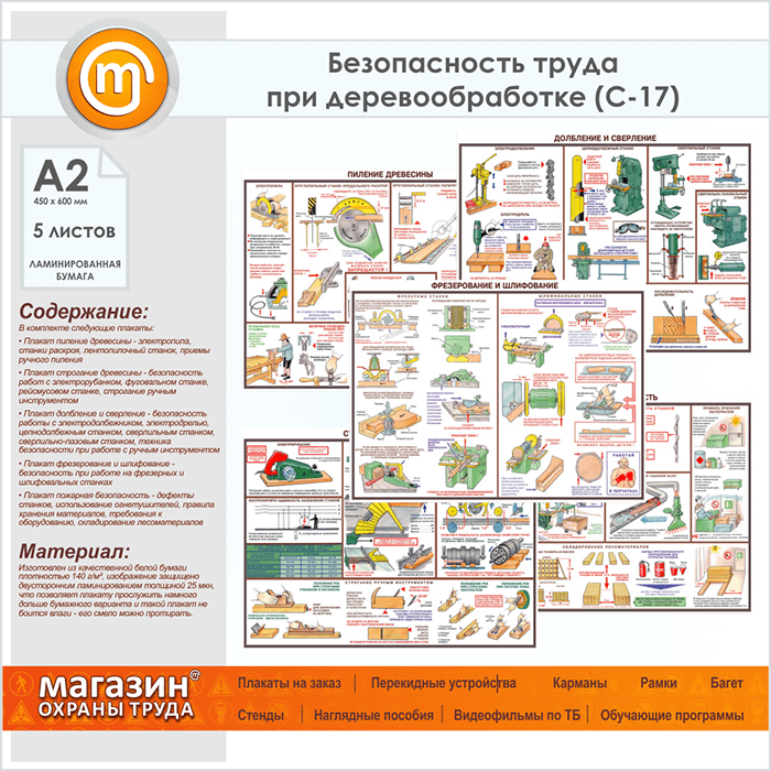 Плакаты «Безопасность труда при деревообработке» (С-17, ламинированная бумага, А2, 5 листов) в Верее купить