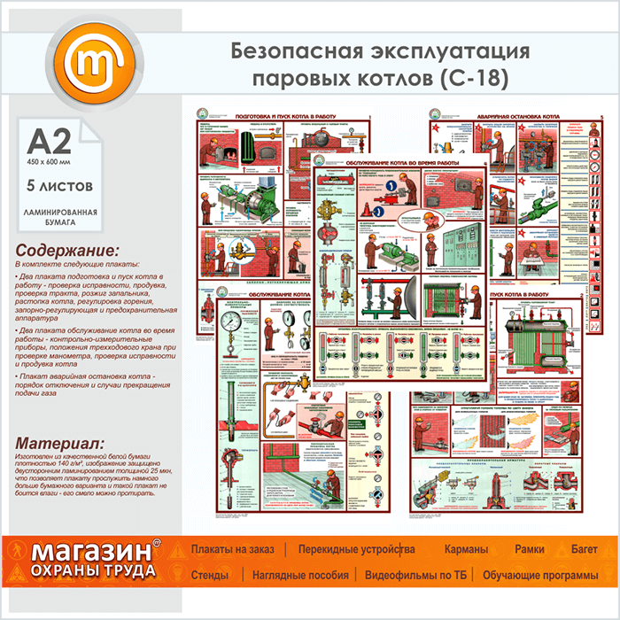Плакаты «Безопасная эксплуатация паровых котлов» (С-18, ламинированная бумага, А2, 5 листов) в Верее купить