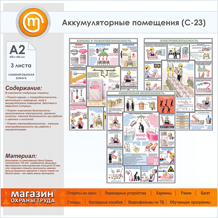 Плакаты «Аккумуляторные помещения» (С-23, ламинированная бумага, А2, 3 листа) в Верее купить
