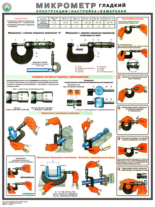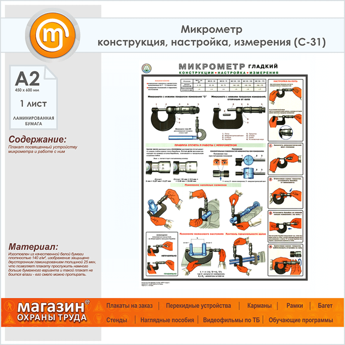 Плакат «Микрометр - конструкция, настройка, измерения» (С-31, ламинированная бумага, А2, 1 лист) в Верее купить