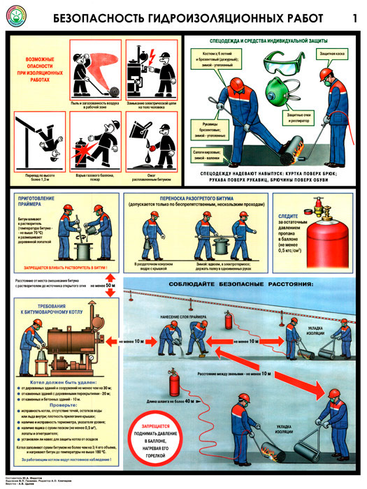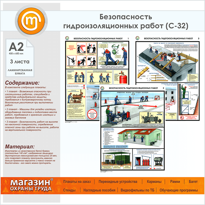 Плакаты «Безопасность гидроизоляционных работ» (С-32, ламинированная бумага, А2, 3 листа) в Верее купить