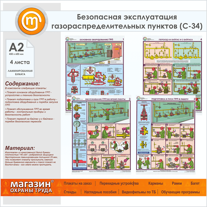 Плакаты «Безопасная эксплуатация газораспределительных пунктов» (С-34, ламинированная бумага, А2, 4 листа) в Верее купить