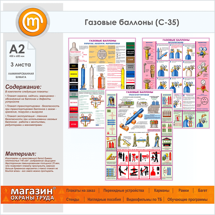 Плакаты «Газовые баллоны» (С-35, ламинированная бумага, А2, 3 листа) в Верее купить