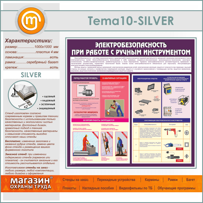 Стенд «Электробезопасность при работе с ручным инструментом» (TM-10-SILVER) в Верее купить