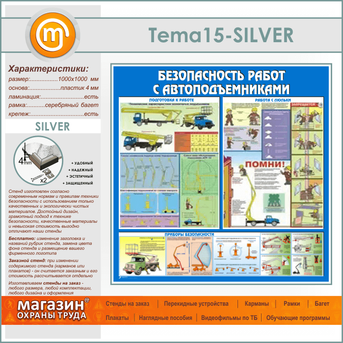 Стенд «Безопасность работ с автоподъемниками» (TM-15-SILVER) в Верее купить