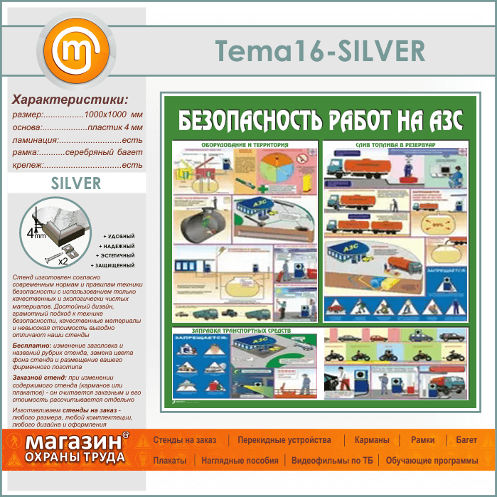 Стенд «Безопасность работ на автозаправочных станциях» (TM-16-SILVER) в Верее купить