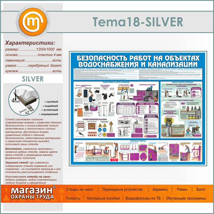 Стенд «Безопасность работ на объектах водоснабжения и канализации» (TM-18-SILVER) в Верее купить