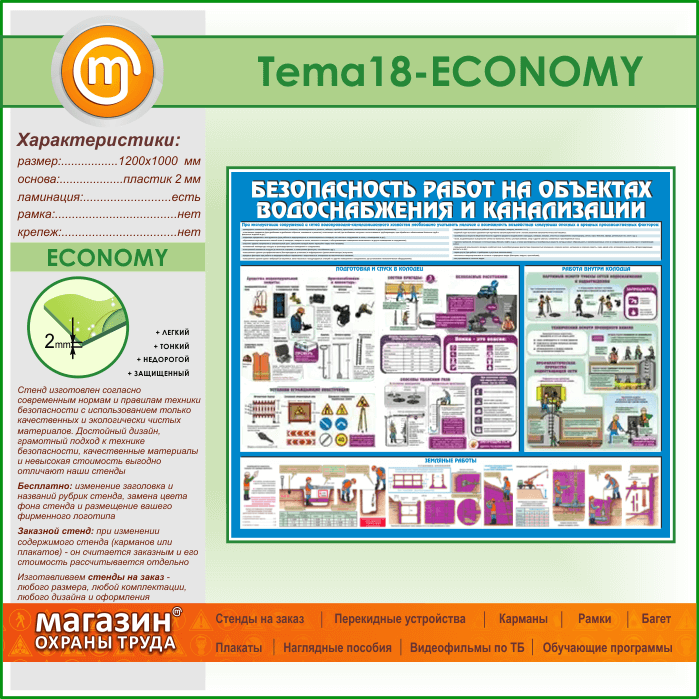 Стенд «Безопасность работ на объектах водоснабжения и канализации» (TM-18-ECONOMY) в Верее купить