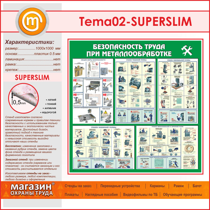Стенд «Безопасность труда при металлообработке» (TM-02-SUPERSLIM) в Верее купить
