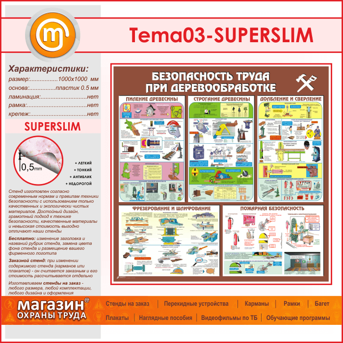 Стенд «Безопасность труда при деревообработке» (TM-03-SUPERSLIM) в Верее купить