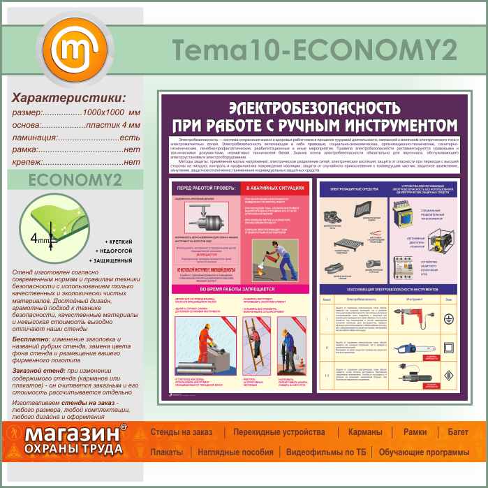 Стенд «Электробезопасность при работе с ручным инструментом» (TM-10-ECONOMY2) в Верее купить